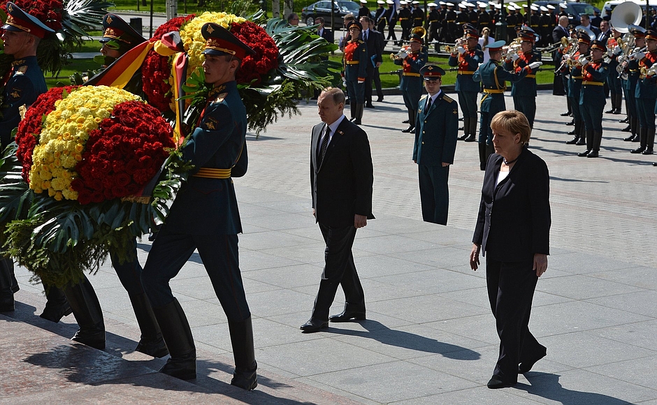 Ангела Меркель прибыла в Москву 10 мая для участия в торжественных мероприятиях в честь 70-летия Победы в Великой Отечественной войне. Перед началом переговоров вместе с Владимиром Путиным она возложила венки к могиле Неизвестного солдата в Александровском саду.