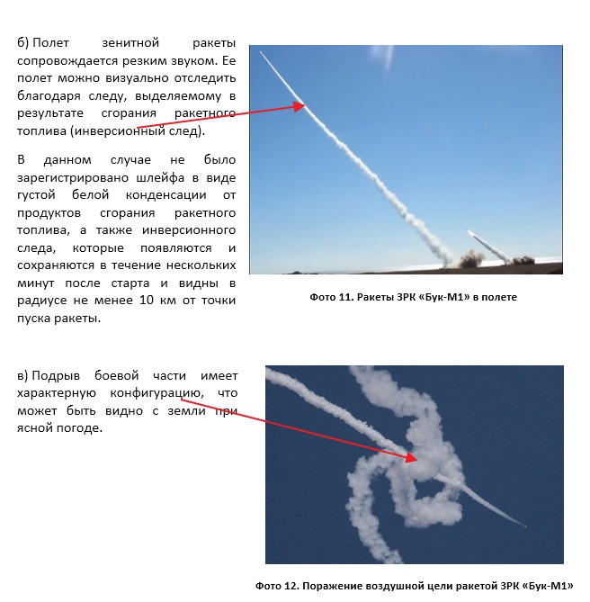 Говоря о первой версии, эксперты отмечают один важный момент: пуск ракеты "Бук-М1" сопровождается аудиовизуальными факторами. "Однако никем до настоящего времени не представлены достоверные свидетельства старта ракеты "земля-воздух", - считают эксперты.