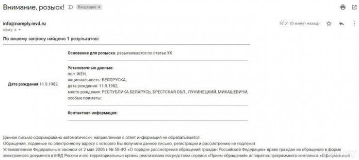 "Возможно, она была объявлена в межгосударственный розыск властями Беларуси, как это было с блогером Степаном Путило и бывшим руководителем Парка высоких технологий и незарегистрированным кандидатом в президенты Беларуси Валерием Цепкало", - отмечает издание.