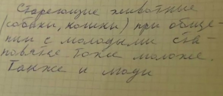 "Стареющие животные (собаки, кошки) при общении с молодыми становятся тоже моложе. Так же и люди", - написал Мохов.