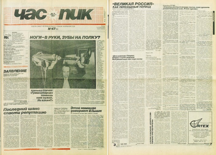Журналисты портала Meduza нашли одно из первых, а возможно, и вовсе первое интервью Владимира Путина. Он дал его 25 ноября 1991 года ленинградской газете "Час пик". Это произошло спустя несколько месяцев после назначения его в мэрию Ленинграда (Путин тогда возглавил комитет по внешним связям администрации Анатолия Собчака).