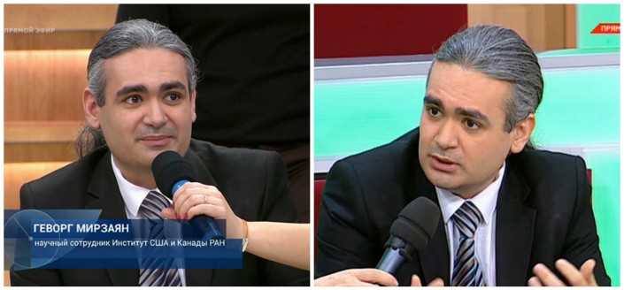 Как отмечает интернет-портал, одновременно на двух каналах дискуссию вели депутат Госдумы Михаил Старшинов, президент Института региональных проектов и законодательства Борис Надеждин, научный сотрудник Института США и Канады РАН Геворг Мирзаян, а также американский журналист Майкл Бом.