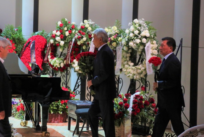Проводить в последний путь легендарного артиста приехал его коллега по Всемирному форуму духовной культуры, казахстанский композитор, общественный деятель Толеген Мухамеджанов.