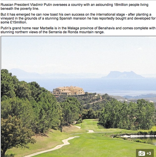 На прошлой неделе в западной прессе появилась статья о поместье Владимира Путина в Испании, со всякими подробностями вроде того, что он выращивает эксклюзивный виноград. Сообщалось, что вилла обошлась покупателю почти в 23 миллиона долларов. Было много перепечаток и обсуждений, хотя тема не новая. Еще в 2012 году испанское издание сообщило - не абы кто, а сам Путин строит дворец в элитном закрытом поселке около Марбельи.