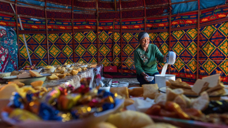 Формирование национальной казахской кухни происходило под действием многих факторов. На нее влияли кочевой образ жизни, постепенный переход к оседлости, изменения в народном хозяйстве. Свою роль в разнообразии национального меню сыграла также большая площадь страны и природно-климатические пояса - переход от степей и равнин к горным массивам, смена засушливых пустынь на плодородную почву с озерами, лесами и реками. То есть в разных регионах одни и те же блюда могли готовить иначе: там, где было холодно, люди ели больше мяса, пища была жирной и сытной, в южных областях в блюдах было много овощей и круп, в районе Каспия рыба нередко заменяла мясо. В итоге особенностью казахской кухни стало отсутствие строгих рецептурных рамок и правил подачи одних и тех же блюд. Tengritravel.kz совместно с НК "Kazakh Tourism" рассказывает об уникальном казахском меню.