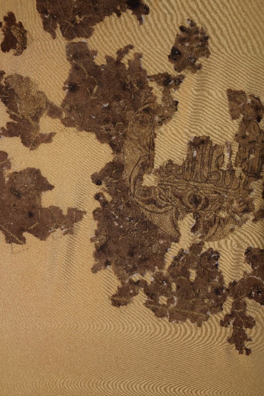 Фрагмент полотнища с вышитой золотой арабской надписью