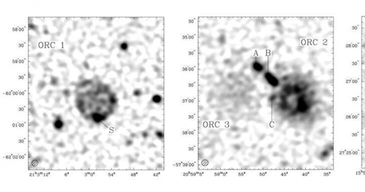 Это не области звездообразования, так как рядом нет никаких галактик. Вряд ли это "лепестки" радиогалактик, созданные струями электронов, вырывающимися из окрестностей сверхмассивной черной дыры: "орки" отчетливо круглые, в отличие от запутанных облаков радиогалактик.