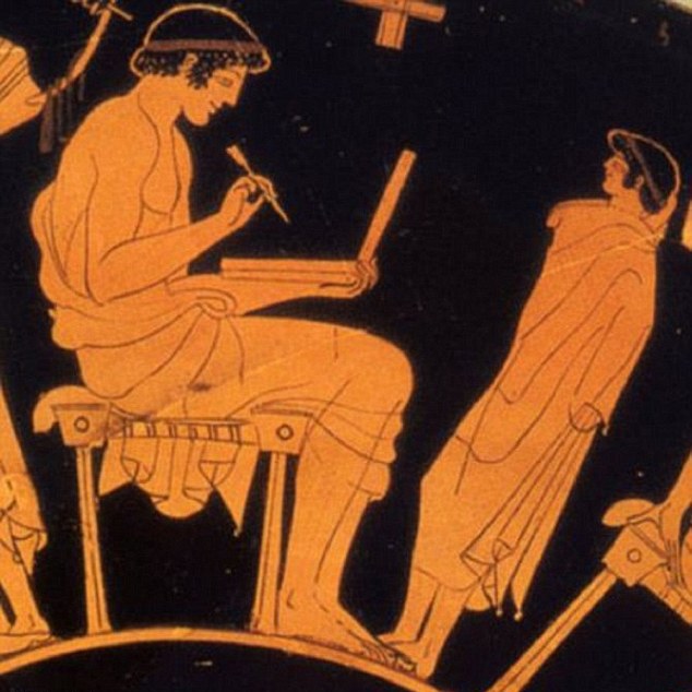 По словам историков, на скульптуре изображена восковая табличка для письма.
