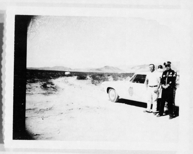 Полицейские за пределами города Сокорро в штате Нью-Мексико, где была замечена летающая тарелка. 1964 год. © cia.gov