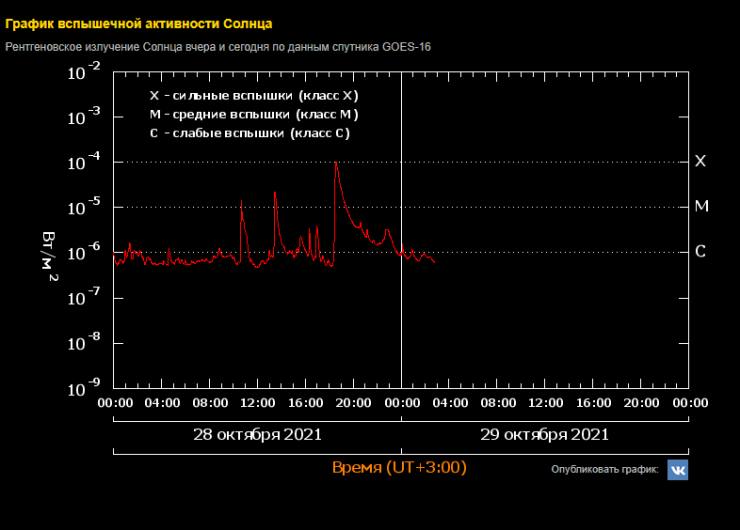 На Солнце в четверг, 28 октября, произошла вспышка максимального класса Х1.0. Об этом сообщили в Лаборатории рентгеновской астрономии Солнца ФИАН (РФ), передает Tengrinews.kz со ссылкой на "Известия".