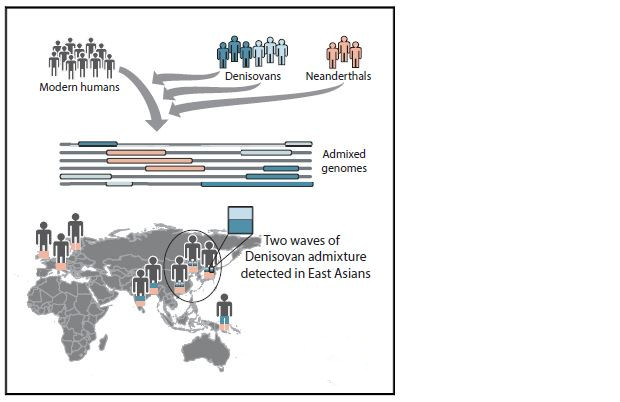 Оказалось, что предки жителей Японии и трех народностей, населяющих Китай, по всей видимости, смешивались с "денисовцами" дважды. В геноме у жителей Восточной Азии ученые нашли участки архаичной ДНК, унаследованные от "денисовцев", родственных девочке с Алтая, чей геном был отсеквенирован, и от второй, неизвестной популяции. Авторы работы подтвердили наличие "денисовской" ДНК у папуасов и жителей Южной Азии, которые, по-видимому, скрещивались с древними людьми один раз.