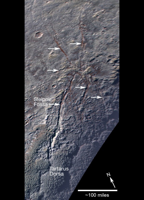 По словам члена геологической команды New Horizons Оливера Уайта, ученые ранее не видели ничего подобного в Солнечной системе. "Какую же паутину сплела геология Плутона. Это еще раз доказывает, что Плутон - нечто особенное", - заявил сотрудник NASA.
