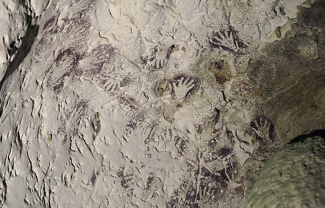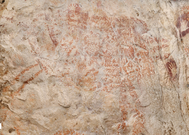 Рисунки рук "по трафарету" на стенах пещеры на острове Борнео. © Luc-Henri Fage
