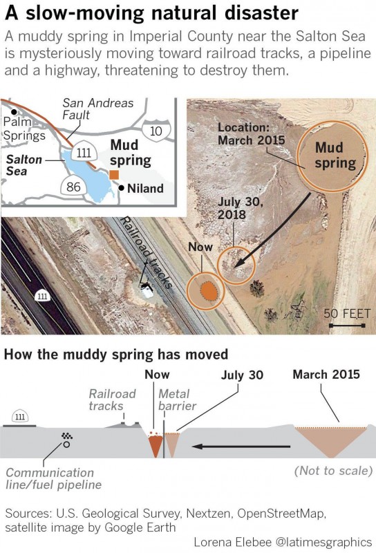 Американские ученые высказали опасения по поводу аномальной активности грязевого гейзера, растущего возле озера Солтон-Си в Южной Калифорнии, сообщает Los Angeles Times.