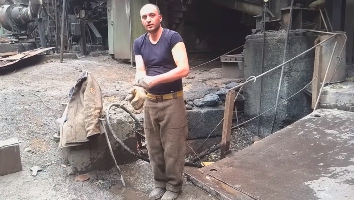 Сталевар, сунувший руку в расплавленный металл, раскрыл секрет трюка © youtube/Аркадий Мгдсян