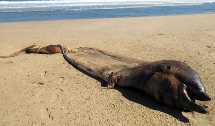 После измерения тела и анализа формы головы животного биологи сделали вывод, что имеют дело с останками клюворыла - морского млекопитающего, которого не видели у местных берегов с 2000 года.