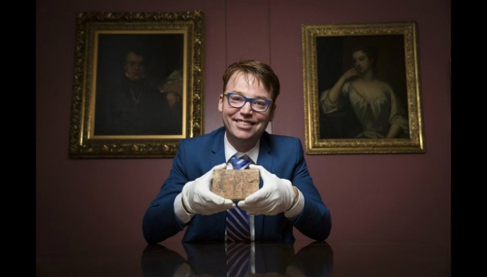 Даниэль Мэнсфилд держит в руках табличку Plimpton 322. © UNSW/Andrew Kelly