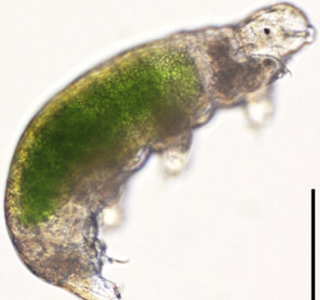 Речь идет о беспозвоночном животном, которое называется тихоходка или "водный медведь". Оно имеет размер менее одного миллиметра в длину и способно выживать в экстремальных условиях. Распространены эти животные повсеместно, от Гималаев до морских глубин. Тихоходок находили в горячих источниках, подо льдом и на дне океана.