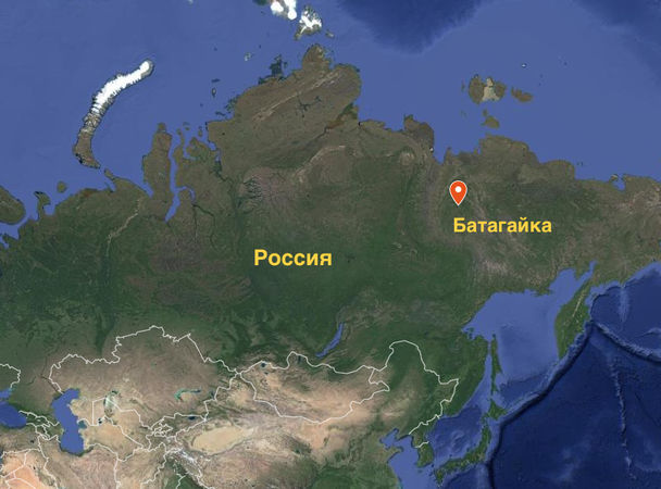 Якутская термокарстовая котловина Батагайка достигает в длину почти километра, в ширину 800 метров, а ее глубина составляет порядка сотни метров. Кратер находится у подножия горы Киргилях в семи километрах от поселка Батагай.