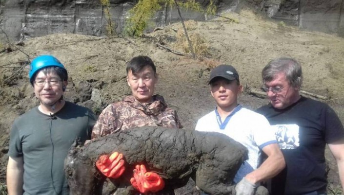 В ходе палеонтологической экспедиции специалисты также обнаружили останки мамонта с мягкими тканями и шерстью. Неполный скелет древнего животного найден 12 августа в 220 километрах вниз по течению реки Яна в местности Юнюген.