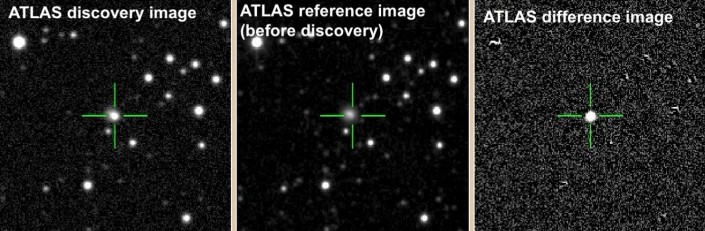 Необычайно яркий объект был обнаружен 17 июня этого года с помощью телескопов на вулканах Мауна-Лоа и Халеакала (Гавайи), которые используются в рамках проекта ATLAS (англ. Asteroid Terrestrial-impact Last Alert System), предназначенного для отслеживания угрожающих Земле астероидов. Ученые рассказали о наблюдениях в интернет-сервисе ATel (The Astronomer's Telegram), предназначенном для быстрого распространения среди астрономов информации о новых космических явлениях, включая гамма-вспышки, суперновые, новые и другие оптические транзиенты.
