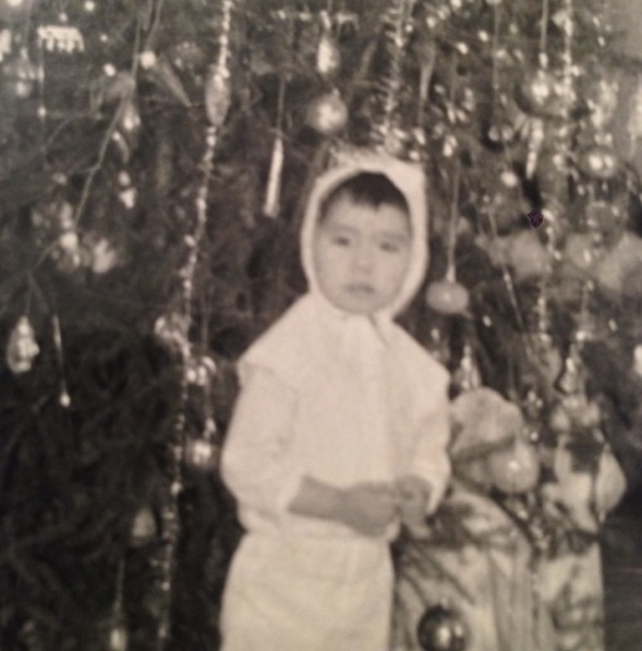 "Возле елочки девочка в клетчатом платье с дождиками", - описывает фотографию в соцсетях она.