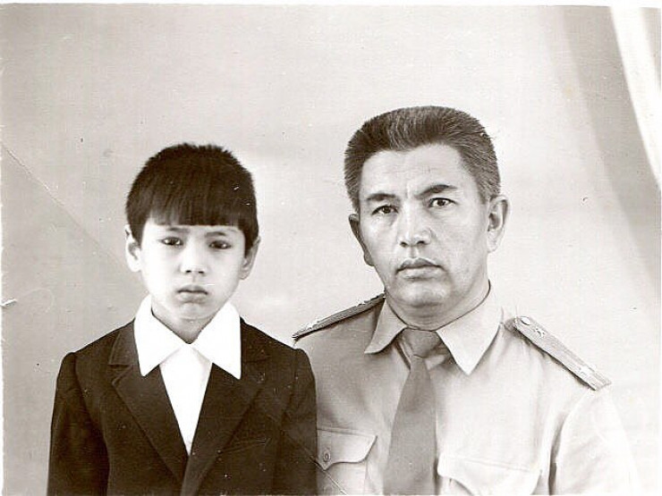 Бұл көпшілікке "Бүркіт" лақапатымен танылған әнші Айбек Жансейітовтің әкесімен түскен суреті.
