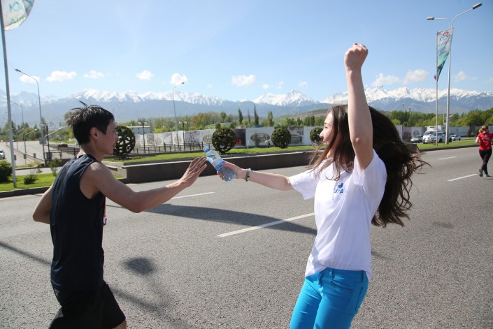 Тренером команды была олимпийская чемпионка по легкой атлетике Ольга Рыпакова, в состав также вошел уже опытный марафонец Дмитрий Жуков, финансовый директор компании Asia Waters, выпускающей минеральную воду Turan. Звездные участники пробежали эстафету Экиден с дистанцией в 42,5 километра.