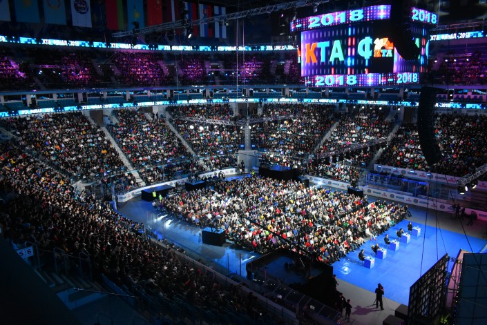 Финал игры КВН проходил накануне в одном из самых больших залов столицы - в ледовом дворце "Барыс Арена".