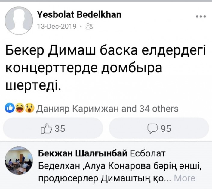 Алайда ол Димаш Құдайбергеннің шапан киіп, домбыра шерткенін неге қолдамайтыны туралы сұраққа да жауап беруден бас тартты. Оның айтуынша, алдағы уақытта ол ойын толықтырып жазады.