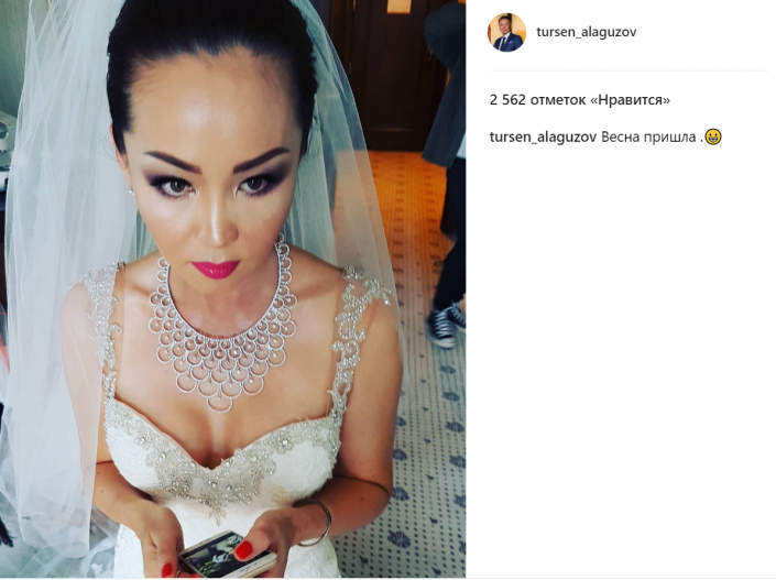 Турсенгали Алагузов опубликовал в своем Instagram фото Баян Есентаевой в свадебном платье, передает Tengrinews.kz