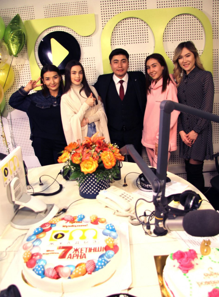 Специальный подарок и большой праздничный торт преподнесла команда "Седьмого канала". Генеральный продюсер Азамат Атагелдиев вышел в эфир с поздравительной речью, пожелал "Жулдыз FM" оставаться в эфире долгие годы и всегда соответствовать своему звездному статусу.