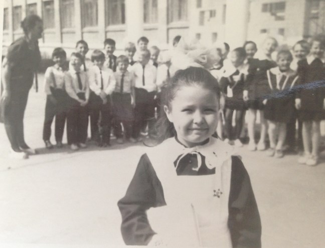 Бұл суретте әнші Қайрат Нұртастың жары Жұлдыздың бірінші сынып оқып жүрген кезі екен.