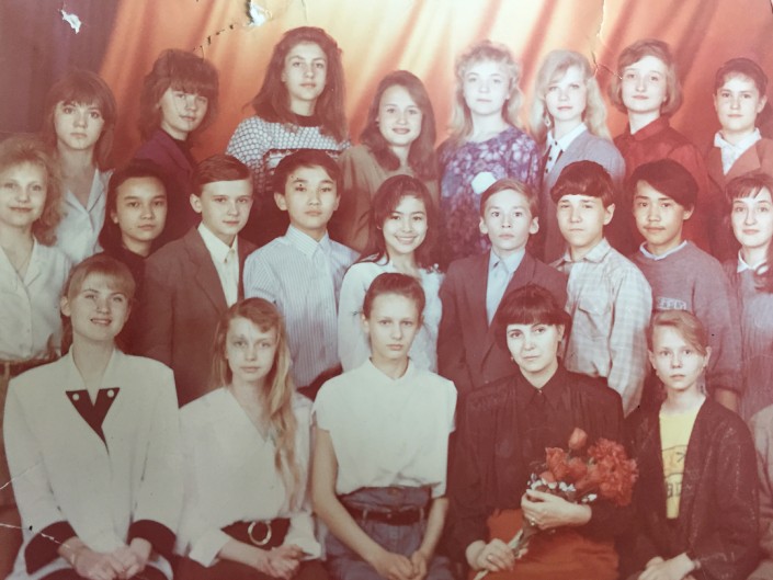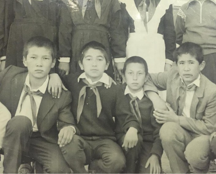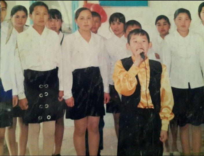 "Қызылордадағы Сәкен Сейфуллин атындағы №4 орта мектебінің оқушылары", - дейді балалық шағындағы суретін жариялаған әнші.