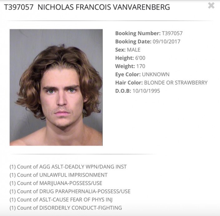 Инцидент произошел на окраине города Финикс. Жильцы одного из домов вызвали полицию из-за шума в подъезде. Приехавшие полицейские заметили следы крови на дверях лифта и в коридоре. По этим следам они дошли до квартиры, которую снимали Николас и его сосед. При разговоре с сотрудниками правоохранительных органов и Николас, и его сосед заявили, что Ван Варенберг случайно порезал руку, поэтому полицейские ушли.
