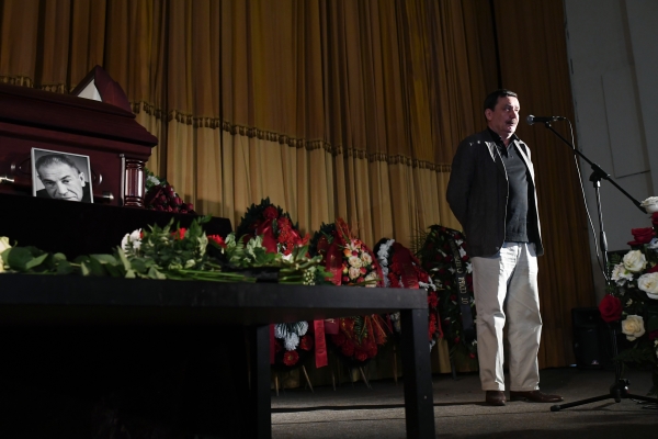 "Когда уходят художники, всегда возникает ощущение такого сиротства, обделенности. Как зритель, я не увижу еще неснятых каких-то фильмов с ним, еще не увижу на сцене и как друг, недообщаюсь. Вот то, что забирают с собой художники. Вот что вызывает боль. Вот что мы сегодня переживаем. Евгений Герасимов очень точно говорил о Шарикове, которая стала визитной карточкой, брендом, а на самом деле выдающимся достижением актерского мастерства. Очень жаль, что действительно ничего не было написано под него, спектакль не поставлен, не поставлена, не написана драма, может быть, комедия на него. Так что, Володя, прости, что тебя недосмотрели, скажем так. Очень любили и любим - во многом благодаря тебе - человека, человеку чужеродного характера, чрезвычайно деликатного, человека, который в основном был погружен в свое творчество, свою семью, своих детей. Слава Богу, они сидят здесь, мы их видим, и это внушает надежду на продолжение чего-то. И слава Богу, что современные технологии позволяют, когда это понадобится, когда захочется, пообщаться с тобой как с актером. Есть диски, есть телевидение. Я думаю, что это надолго, пропорционально творческой отдаче, с которой ты существовал в кинематографе и театре. Я говорил детям, Володя, твоим, что они должны знать и чувствовать, что мы - твои друзья, твои благодарные зрители, твои коллеги - разделяем боль, которую несут они. Я не знаю на самом деле, чувствуют ли это дети, не знаю, насколько это облегчает им, может быть, им не нужно это облегчение, не знаю. Но это нужно нам, нужно мне лично. Я должен ощущать, что часть боли забираю себе. Прощай, Володя! Спасибо тебе за то, что ты был. Замечательно, что ты остаешься в виде возможности общаться с тобой как с актером, глядя на экраны. Хорошо, что у тебя такие сыновья. Прощай, дорогой! Мы еще долго долго будем тебя помнить!".