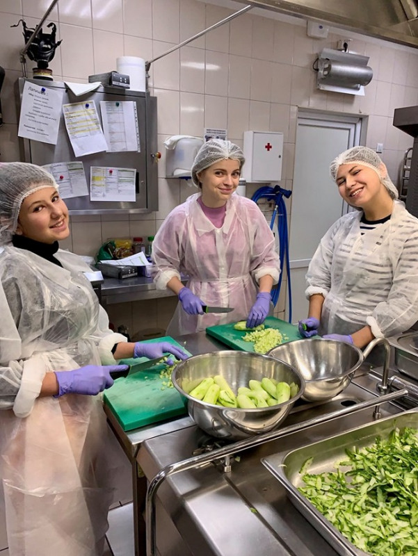 Кроме того, на Facebook-странице школы опубликованы снимки, на которых можно увидеть процесс приготовления еды. Сообщается, что Александра Зеленская также принимала участие в этом процессе. Судя по фото, она отвечала за очистку и нарезку овощей.
