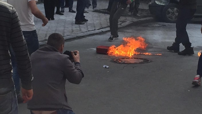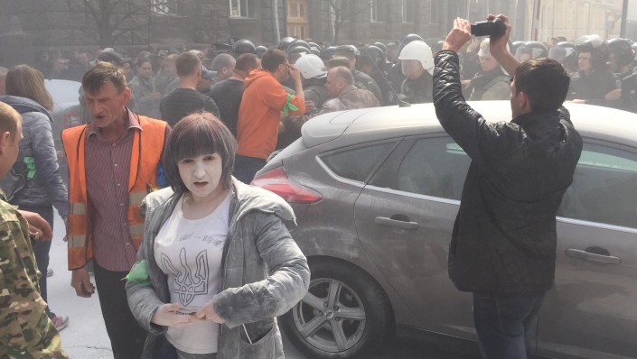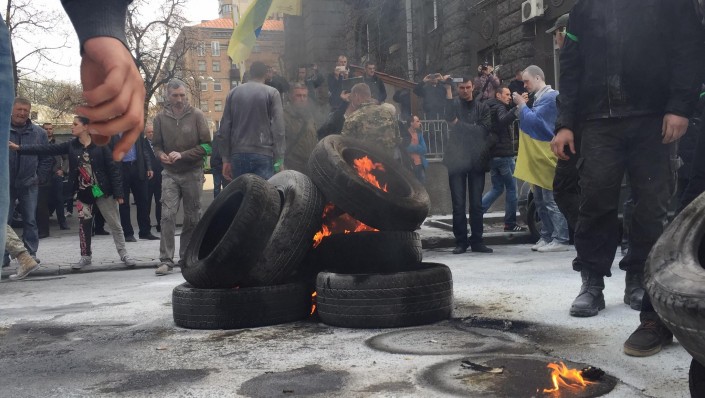 Как сообщает издание, организаторы акции потребовали люстрации сотрудников правоохранительных органов. Один из лидеров "Автомайдана" Сергей Коба поделился на своей странице в Facebook фотографиями с места проведения акции. В ходе протеста силовики сформировали кордон перед Администрацией, преграждая активистам путь к зданию. Судя по огромному количеству белого порошка, распыленного на месте акции, правоохранители попытались потушить пылающие покрышки из огнетушителей.