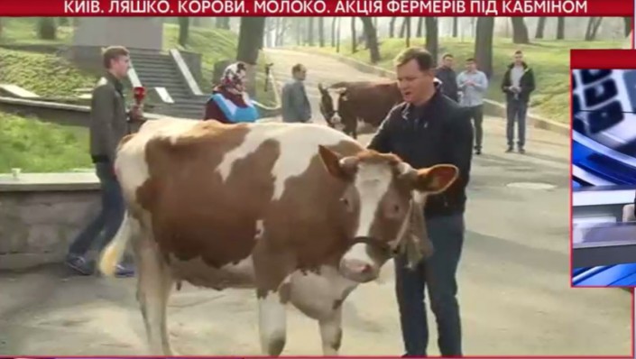 Стоит отметить, что ранее перед зданием Кабинета министров акцию протеста провели фермеры. Они вывели из грузовика несколько коров и требовали увеличить закупочные цены на молоко. Отмечается, что лидер Радикальной партии Олег Ляшко помогал фермерам "угомонить" коров.