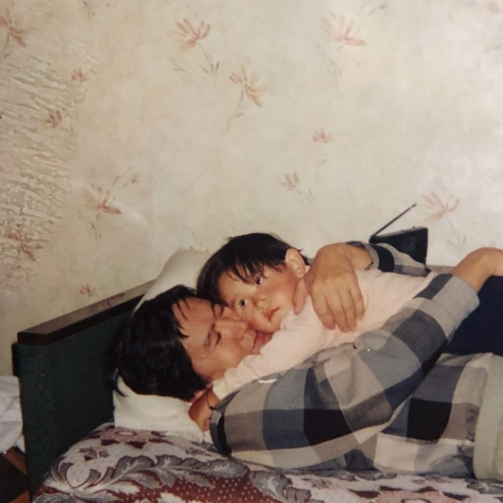 "Әке ... Адал. Батыл. Ең жақсы. Шындық біздің жағымызды! Махаббат заңсыздықтан күшті! Әділдік орнайды! Біз сенімен біргеміз!", - депген ол бала кезінде әкесімен түскен суретін жариялап.