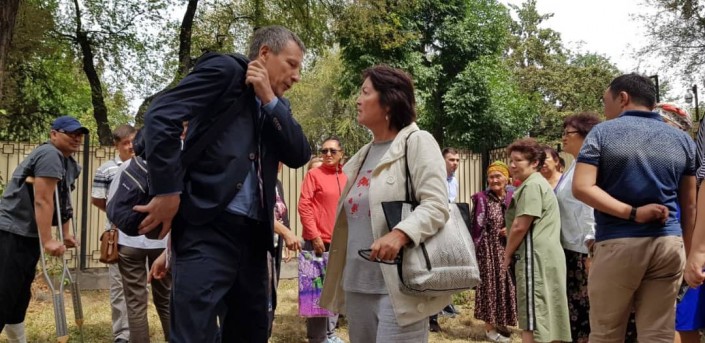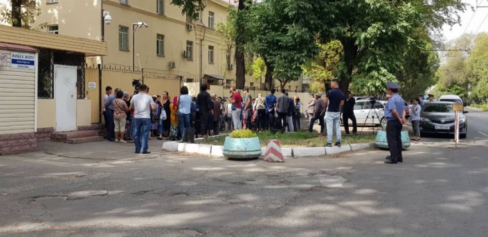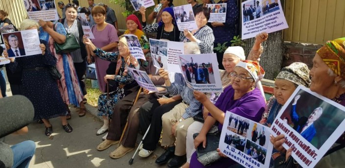 Отметим, у здания ГКНБ собралось около 40 человек, среди них пожилые женщины, с плакатами в поддержку бывшего президента.