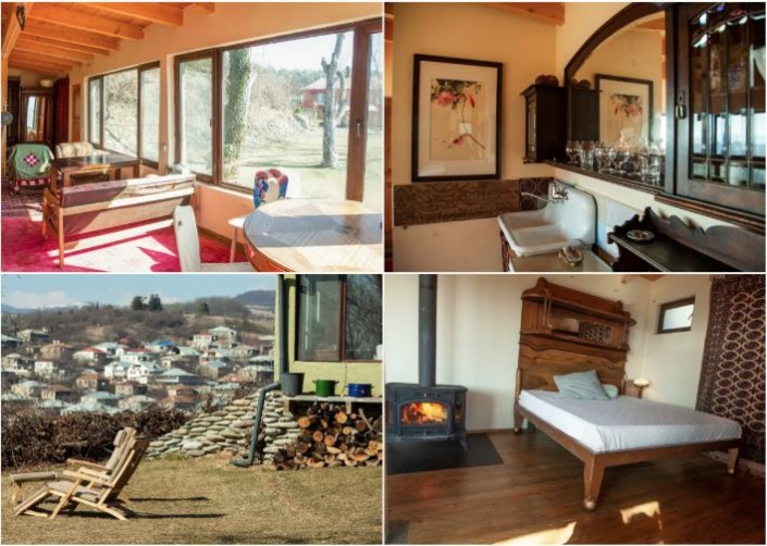 Канал сообщает, что энергоэффективный коттедж с земляной крышей Маргвелашвили построил сам два года назад в нескольких метрах от хозяйского дома. Собственными руками он сделал и многие предметы мебели. Мака Чичуа взяла на себя интерьер комнат. Именно ей пришла в голову идея сдавать дом туристам.