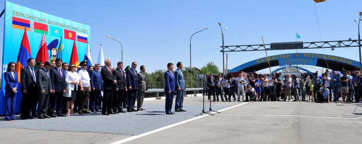 Таможенная граница между Кыргызстаном и Казахстаном снята в рамках вступления КР в ЕАЭС. Распоряжение об открытии границ через телемост дали президенты двух стран Нурсултан Назарбаев и Алмазбек Атамбаев, передает корреспондент Tengrinews.kz. Непосредственно в церемонии открытия таможенной границы приняли участие премьер-министр КР Темир Сариев и вице-премьер-министр РК Бакытжан Сагинтаев.