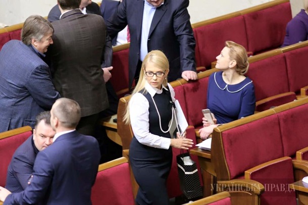 Как отмечают украинские СМИ, экс-премьер пришла в парламент без привычной косы на знаковое заседание Рады. Именно во вторник должна решиться судьба правительства Арсения Яценюка.