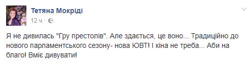 Пользователи соцсети бурно отреагировали на косички Тимошенко: одни сравнили ее с Дейенерис Таргариен из "Игры престолов", другие - с персонажем из фильма "Звездные войны", третьи пишут, что депутат готовится к новому политическому сезону.