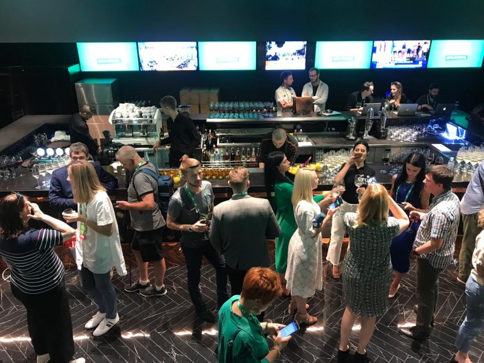 "Слуги народа" принимали хорошо, о чем не стеснялись говорить видевшие разные приемы украинские журналисты. После тяжелого рабочего дня на избирательных участках бесплатные пицца, гамбургеры, сыры, картошка фри, салаты и множество напитков (включая алкоголь на баре) были как нельзя кстати. Уж явно в диковинку были настольные игры (теннис, футбол) и фототочка в стиле боксерского ринга - все это проходило непринужденно с перерывами на блицы со спикерами партии. Для удобства журналистов в каждом помещении было табло, на котором включали обратный отсчет до начала пресс-конференции того или иного спикера.