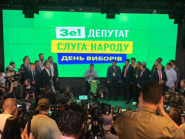 Специальный корреспондент Tengrinews.kz в Украине Жанна Нурланова провела ночь с 21 на 22 июля в штабе победителей, куда оперативно стекалась информация с избирательных участков от представителей партии. Команда "Слуга народа" выбрала то же место для работы штаба и пресс-конференций, что и на президентских выборах, - ночной клуб  Champion Hall. Кроме самого Владимира Зеленского, которого представили как "фаната партии", в элитном заведении можно было увидеть новоиспеченных депутатов, членов Администрации президента, Совета нацбезопасности Украины и, конечно, бывших  КВНщиков. Среди этой публики наверняка находился будущий премьер-министр и генпрокурор, которых в первые дни работы должен представить парламент, где "Зе!" уже имеет большинство.