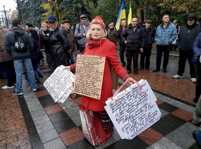 Участники митинга настроены против политики Порошенко. Стилистика плакатов напоминает времена свержения Януковича.
