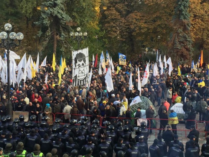 Утром 17 октября в Киеве возле здания Верховной Рады началась многотысячная акция протеста соратников бывшего одесского губернатора Михаила Саакашвили и других оппозиционных политиков и политических сил. Среди них - партия "Свобода", Национальный корпус, "Самопомощь", "Гражданская позиция", Мустафа Найем, Сергей Лещенко и другие.