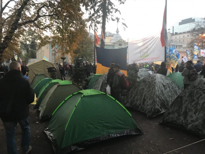 Протесты сопровождались беспорядками, в результате которых пострадали несколько человек. Участники митинга решили не расходиться до удовлетворения своих требований и начали устанавливать палатки возле здания Рады. Активисты установили около 60 палаток и остались на ночь.